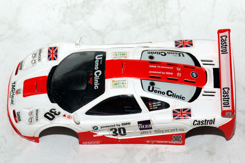 Op marktplaats heb ik de Ninco McLaren F1 GTR Art Sports gekocht. Deze auto is niet nieuw en heeft enkele gebruikssporen. Dit geeft niet zoveel omdat de auto toch een opknapbeurt krijgt. Het is duidelijk te zien dat de decals al aardig verkleurd zijn en dat er veel vuil op de body zit. Een goede opknapbeurt kan nooit weg.