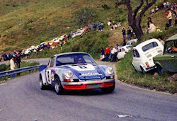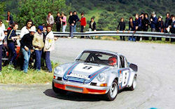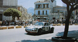 Informatie over de Targa Florio van 1973: "Tot op de dag van vandaag de zwaarste serieuze straat-race in de wereld" Dr. Ing. h.c. Ferdinand Porsche-1976 De naam Porsche is al heel lang verbonden met de Targa Florio. Het was in 1924 toen Ferdinand Porsche meedeed als navigator van Alfred Neubauer. Ze eindigden 13e in deze race en het duurde uiteindelijk tot 1956 voordat een auto met de naam Porsche de race won! De Targa Florio werd georganiseerd door een jonge race-gek, Vicenzo Florio, telg van een prominente Siciliaanse familie. Vicenzo Florio was degene die het eerste gemotoriseerde voertuig naar Sicilie bracht. Hij was ook degene die de eerste Siciliaanse motor-race organiseerde die bestond uit een motor, een auto en een paard....het paard won de race!! De eerste Targa Florio op 6 mei 1906 kon nog niet echt een race genoemd worden. Een ronde van ongeveer 150 km over weggetjes die niet echt voor auto's aangelegd waren. Coureurs moesten soms ook onder erbarmelijke klimaatsveranderingen rijden terwijl ze ook het risico liepen door banditen of wolven te worden overvallen. In elke haarspeldbocht moest de coureur de strijd aangaan met de steile afgronden en dat met een race die in totaal bijna 450 kilometer was. In het begin waren er weinig regels en mochten auto's meedoen waarvan er minstens 10 waren gebouwd. Aan de startstreep van de eerste race verschenen slechts 10 auto's door een staking in de haven van Genua. Na 9 uur racen was het Alessandro Cagno met een gemiddelde snelheid van 45 km/u die won. De race was erg populair en de race in het jaar daarna bracht 50 auto's naar de startstreep. In 1907 was de race op 22 april. Felice Nazzaro, die later een racelegende werd, won de tweede Targa Florio. De race van 1921 maakte de Targa Florio eindelijk volwassen met de inschrijving van 2 fabrieksteams (Alfa Romeo en Fiat) en in 1924 eindigde Alfred Neubauer als 13e met zijn navigator Ferdinand Porsche terwijl Christian Werner won in een Mercedes nadat Antonio Ascari gedwongen was om zijn gestrande auto over de finishlijn te duwen. In 1956 vond de 40e race plaats, de eerste waar een auto met de naam Porsche aan deelnam. Elf dagen voor de start van de Targa Florio van 1956 besloot Porsche om Umberto Maglioli deel te laten nemen in een Porsche 550A, een auto met slechts 130 PK en met een gewicht van minder dan 515 kg. Ze kwamen terug met de overwinning, met 15 minuten voorsprong op Maserati. In de jaren daarop volgend behaalde Porsche vele overwinningen, met voor Nederland als belangrijkste de overwinning in 1973, de laatste echte Targa Florio, van Gijs van Lennep in zijn Martini-Porsche Carrera RSR.