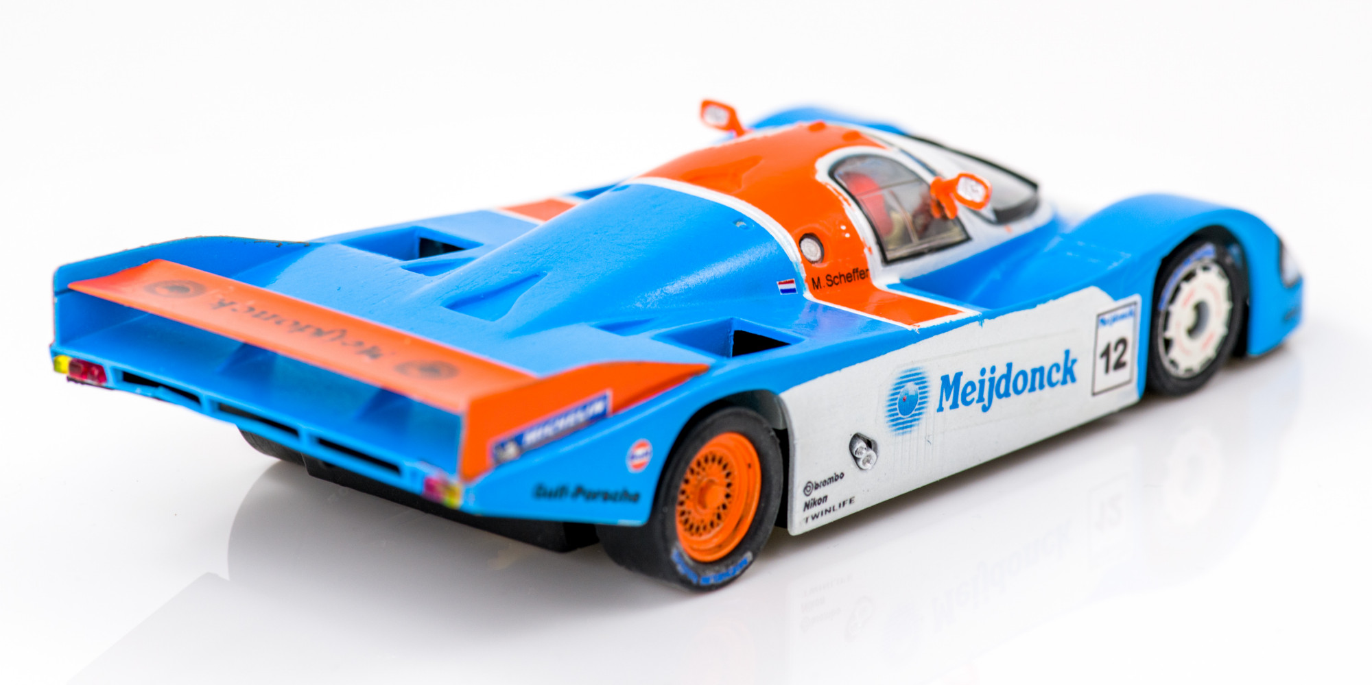 Hieronder is de totstandkoming van de Porsche 956LH Meijdonck te zien. Uitgangspunt was de Slot.it White Kit Porsche 956LH. Deze kit is op internet te vinden onder artikelnummer CA02za. Met deze body ben ik al wat aan het experimenteren geweest. De gebruikte decals had ik nog liggen van mijn McLaren F1 GTR Meijdonck.