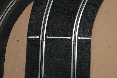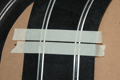 Om een mooie lijn te kunnen maken zal een lijn afgeplakt moeten worden. Dit wordt gedaan met gewone "schilders" afplaktape. Wel goed aandrukken op de baandelen zodat de verf er straks niet onder kan uitlopen. Hierdoor zouden ongewenste lijnen ontstaan. |