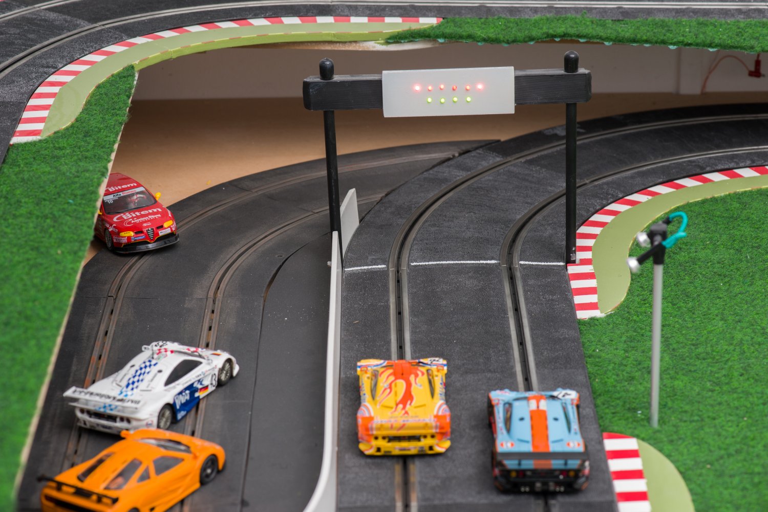 De 2 extra rode leds gebruik ik om tijdens de race een signaal te geven als