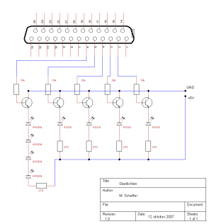 Om ervoor te zorgen dat races eerlijk verlopen is een brug met startlichten gemaakt. Immers zonder lichten kunnen de "coureurs" zomaar starten en dat is niet wenselijk. Er wordt een startlicht gemaakt die aangesloten is op een ltp poort van de computer. De lichten zullen, zoals hiernaast weergegeven, bestuurd worden door dezelfde software als waarmee de tijdregistratie wordt geregeld.