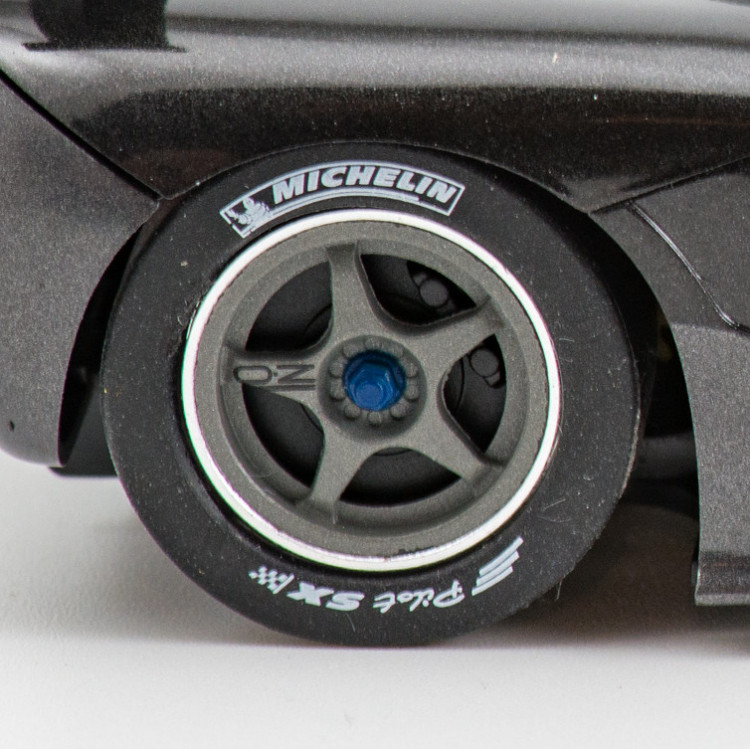De velgen en banden van Mr Slotcar en Scalextric ontlopen elkaar niet zoveel maar uiteindelijk zie ik een leuk detail
