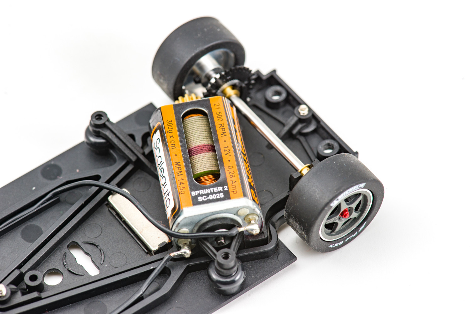 Van de drie McLaren's heeft alleen de Mr Slotcar de motor anders in de auto liggen en wel anglewinder. Beide andere