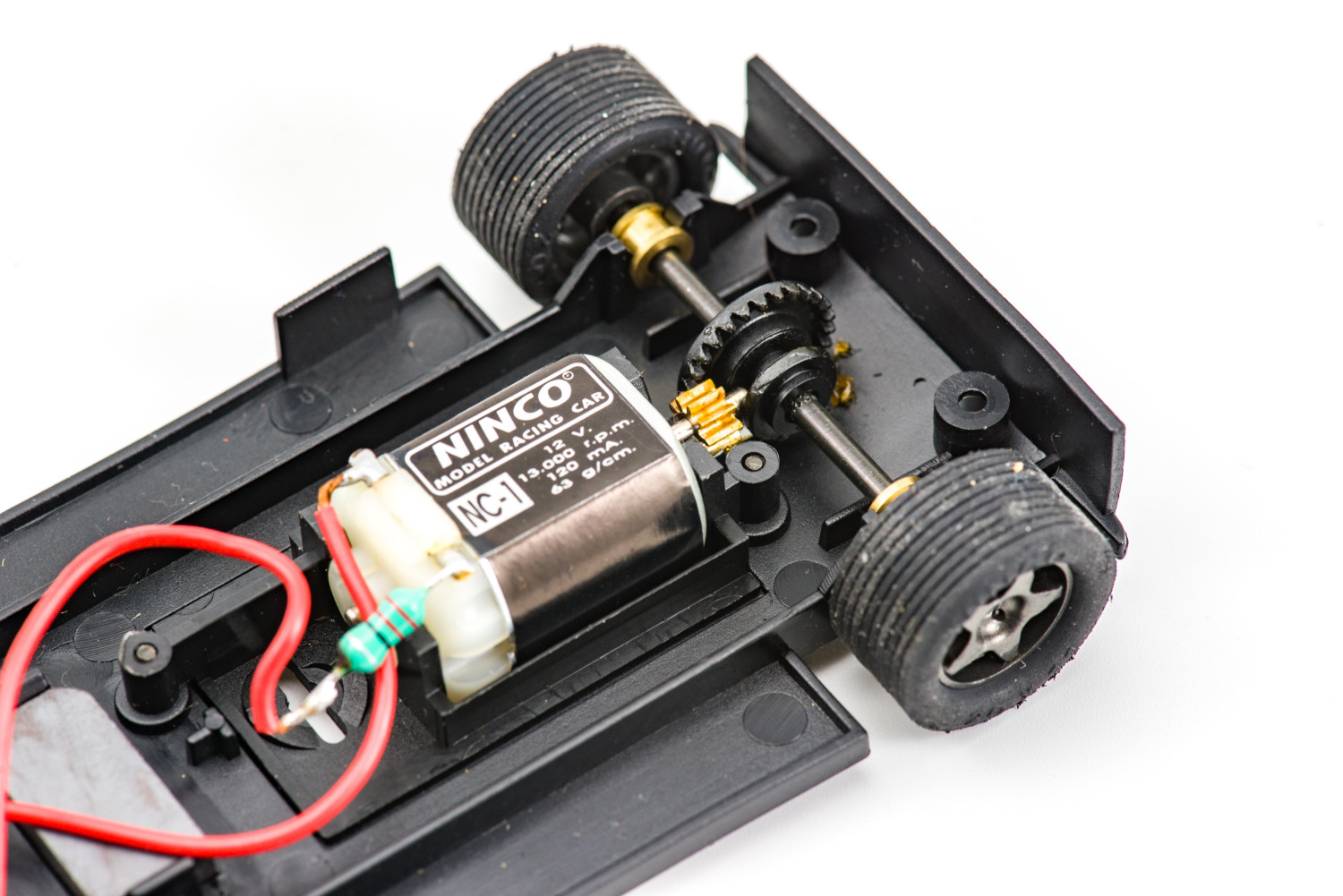 De motor van de Ninco is al oud en heeft daardoor weinig power. De McLaren van MR Slotcar heeft de snelste motor en in anglewinder.